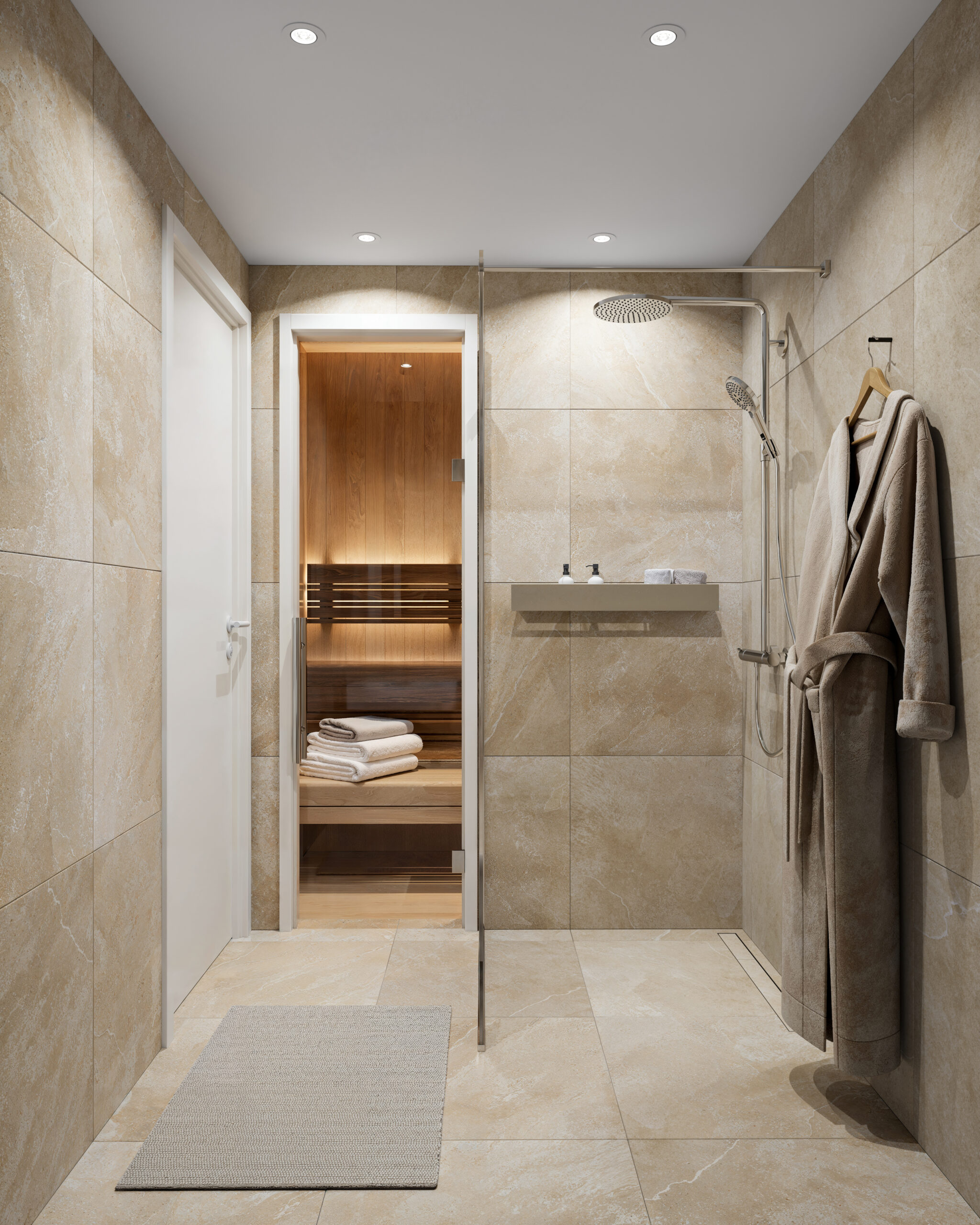 Eluruumide seinad on värvitud neutraalsetes toonides, et luua avar ja rahulik õhkkond. Vannitubade seinad on kaetud keraamiliste plaatidega ning laes on süvistatud valgustid. Põrandad eluruumides on naturaalse spooniga parkett, esikutes ja sanitaarruumides keraamilised plaadid. Sanitaartehnika ja -keraamika on kaasaegne ja kvaliteetne, pakkudes nii visuaalset kui praktilist kasutusmugavust. Korterite välisuksed on tulekindlad puituksed. Siseuksed on kas spoonviimistlusega või valged raamuksed, mis toetavad ruumide visuaalset terviklikkust.
